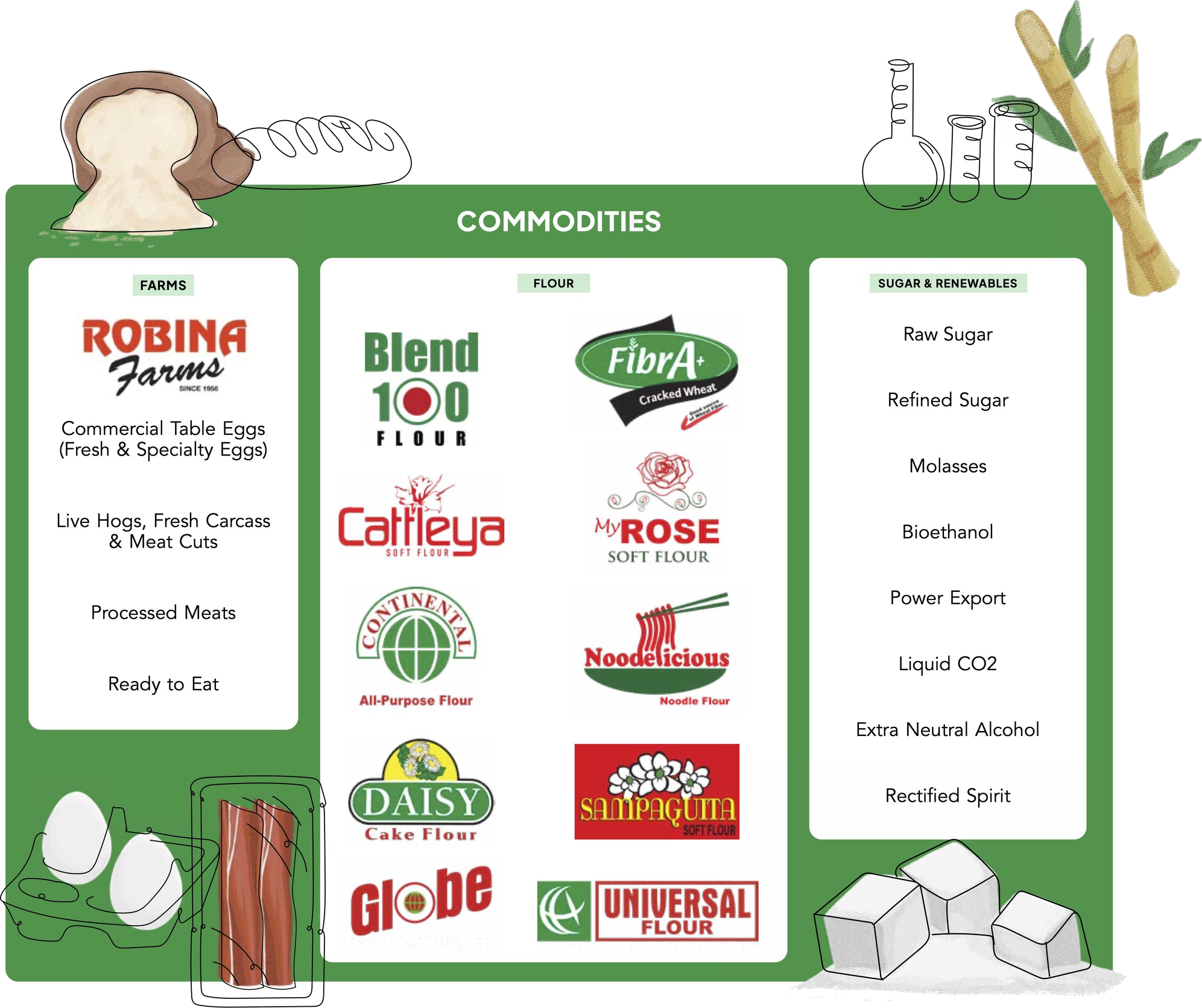 Alongside our Branded Consumer Goods, our Animal Nutrition and Health division continues its strong growth, fueled by the expansion of our pet food portfolio alongside our core animal feeds business. In our Commodities segment, URC remains the country’s largest sugar miller and one of the top flour millers in the Philippines, with the bulk of these commodities vertically integrated.